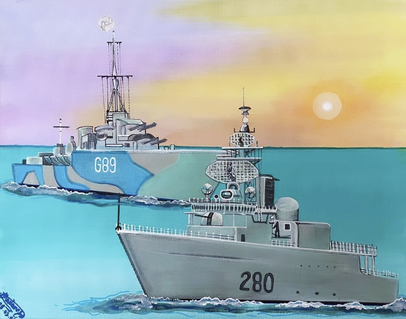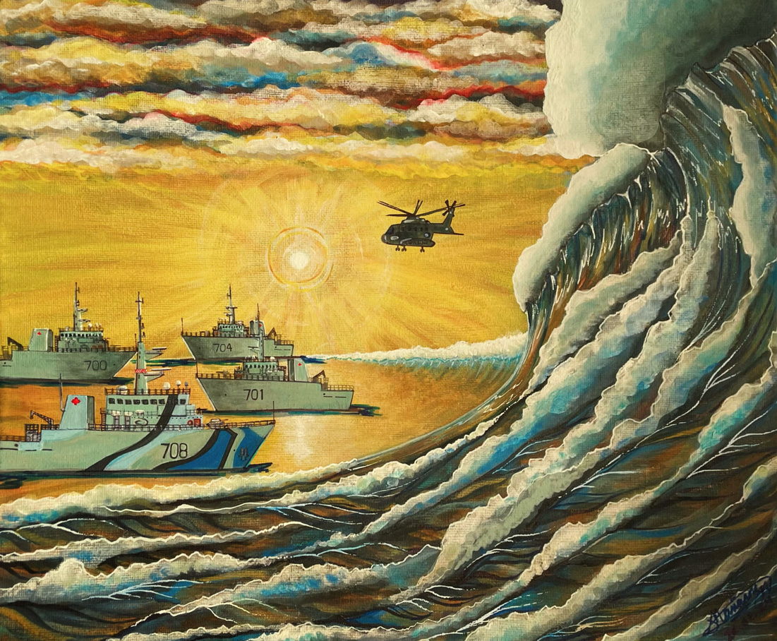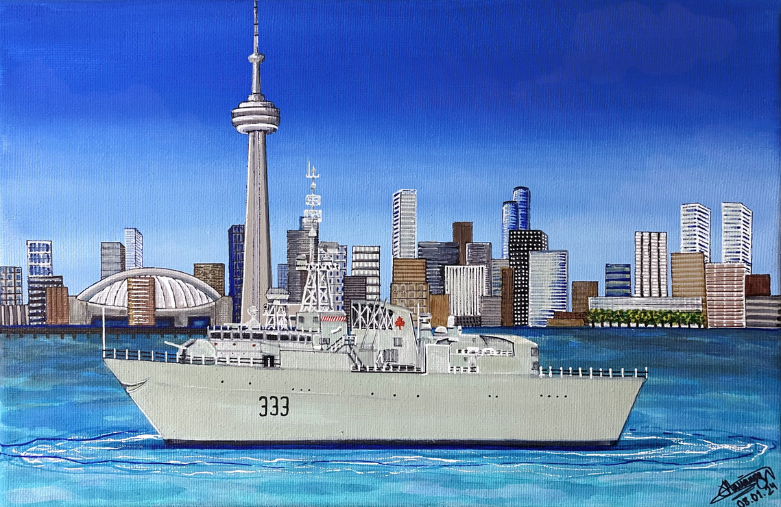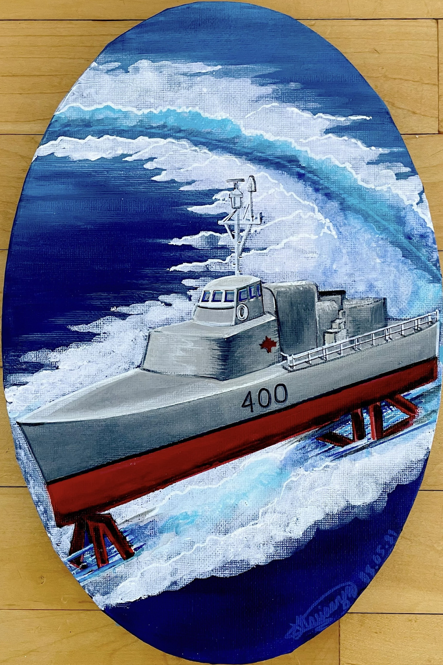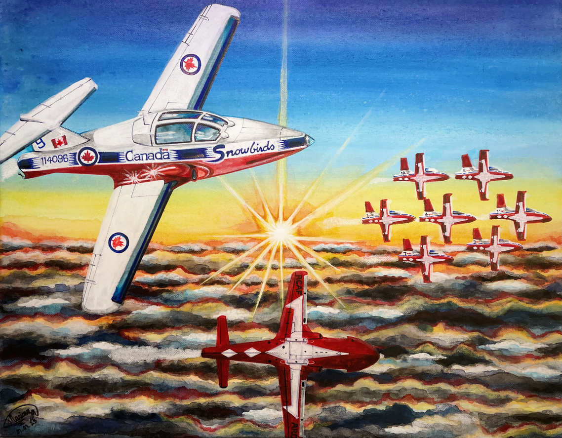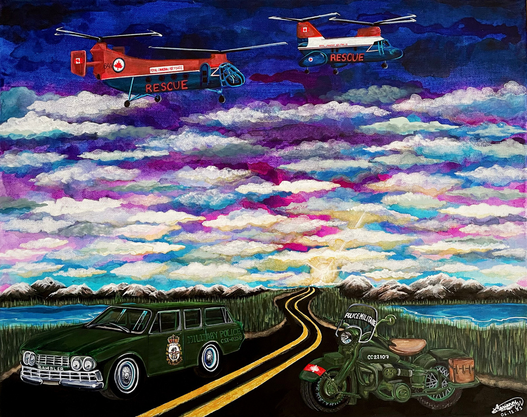 I have been painting for 20 years. My preferred medium is acrylic and watercolours, art style is whimsy realism, and I am a landscape artist. My educational background is in Electro-Mechanical Engineering. I have always been interested in engineering design and development and it was a major concept I’ve learned throughout my education. The aircraft, ships and vehicles used by the Canadian Armed Forces in training and operations intrigues me. I am a Naval Weapons Engineering Technician by trade. I find my job satisfying as there is always something new to learn as we maintain the integrity of the ship’s weapons systems. My aim through my art is to portray these machines as more than inanimate objects. They are a big part of Canada’s history and capabilities.