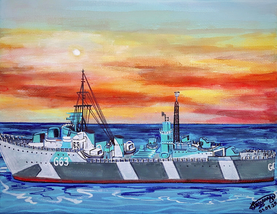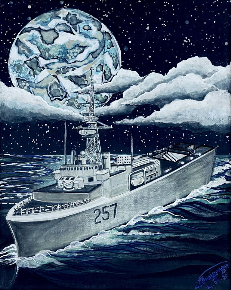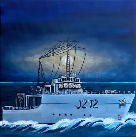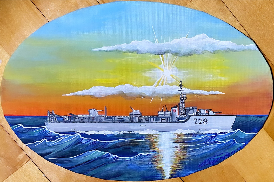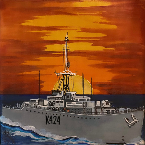 This C-Class destroyer was commissioned 26 November 1945 and decommissioned 15 January 1960. HMCS Crusader served during the Korean War and was mainly used as a training and test platform for a newly developed variable depth sonar. This piece is dedicated to my Aunt Janet for sharing her family history and grandpa Thomas Lawrence for serving onboard HMCS Crusader during his first deployment.