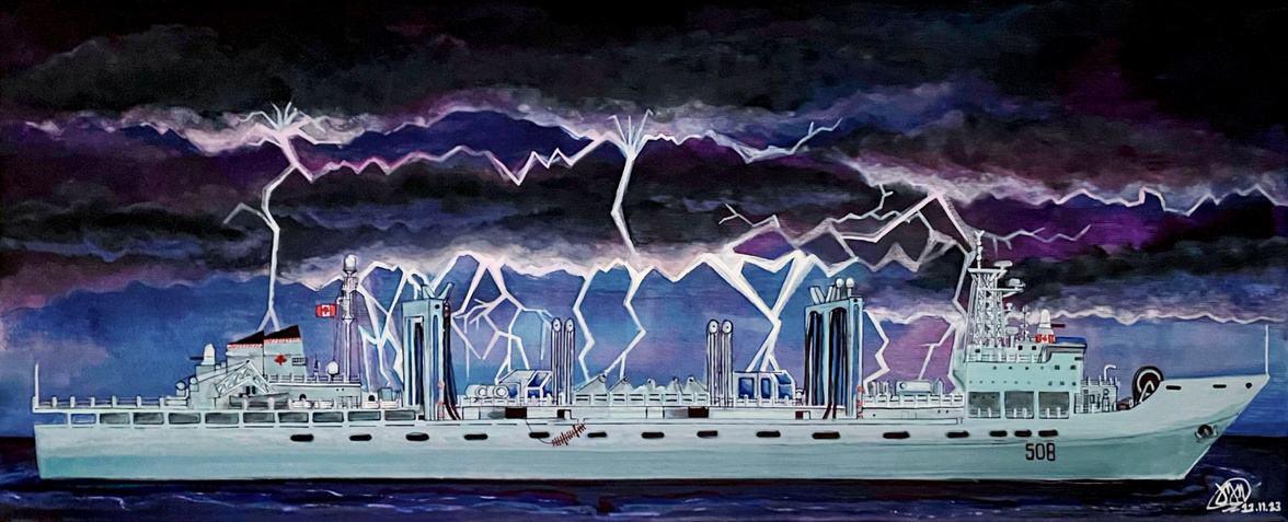 HMCS Provider(Protecteur Class) in a thunderstorm.